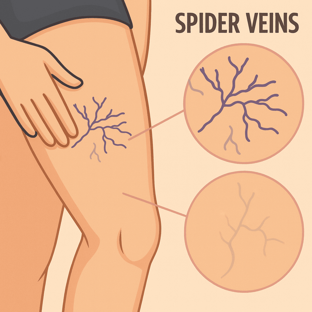 Οι “σπασμένες” φλέβες στα πόδια ονομάζονται ευρυαγγείες (spider veins) και δεν είναι τιποτά άλλο από διατεταμένα φλεβίδια της επιδερμίδας. Συνήθως έχουν ελικοείδή πορεία και εμφανίζονται να ξεκινούν από ένα σημείο και να εκτείνονται ακτινωτά από προς όλες τις κατευθύνσεις.